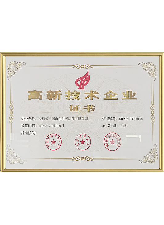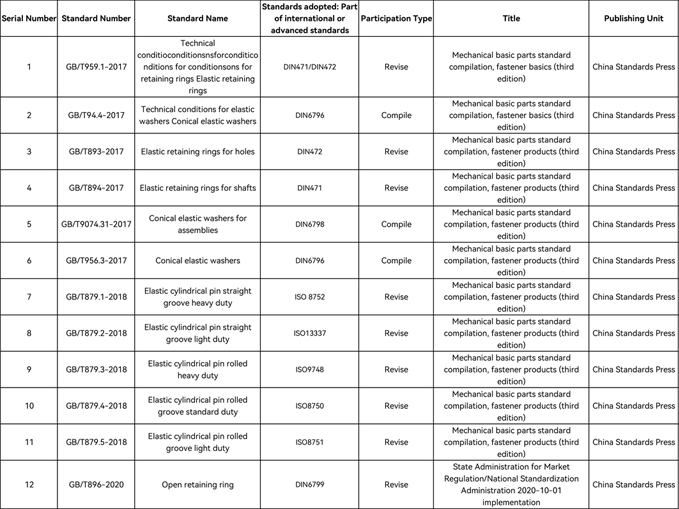 Perusahaan Dongbo telah menjabat sebagai anggota unit Komite Teknis Nasional untuk Standarisasi Pengencang selama bertahun -tahun dan menjadi tuan rumah pertemuan tahunan ke -4 dari Teknis Nasional ke -5 Komite untuk standardisasi pengencang pada tahun 2015. Telah memimpin secara berturut -turut atau berpartisipasi dalam perumusan dan revisi 13 standar nasional termasuk teknis Kondisi untuk cincin penahan elastis, Pin silinder elastis, dan mesin cuci cakram.